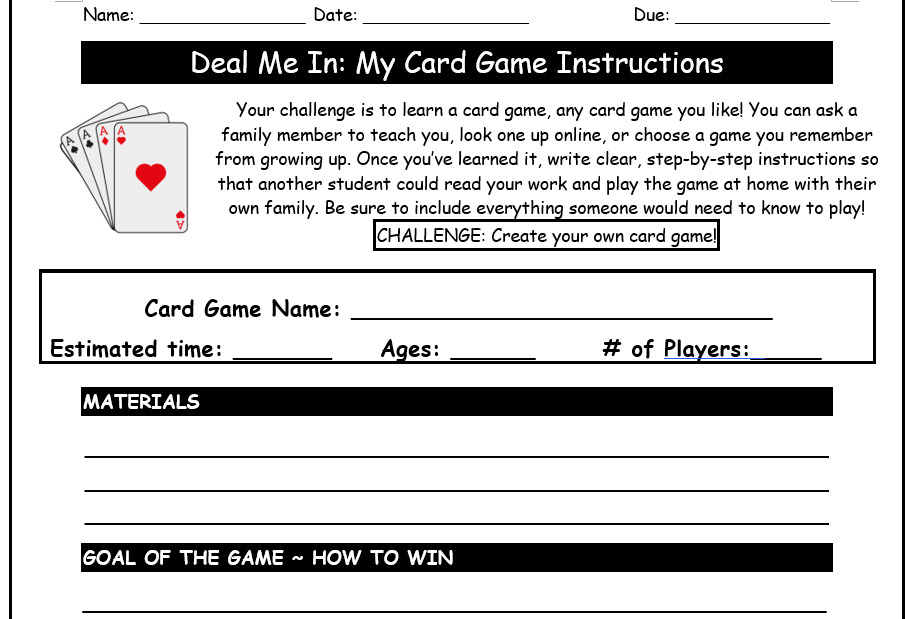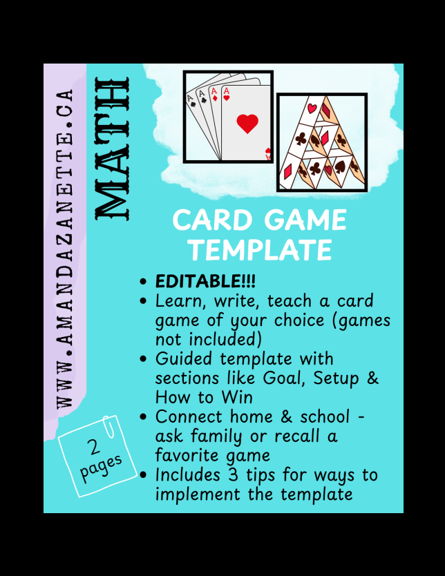 Categories: Select a Category FREE SDG TEMPLATES [ PROJECTS / UNITS ] [ BUNDLE OFFERS ] [ TC & AZ Resources ] ~ START OF THE YEAR ~ ~ ART ~ ~ FRENCH ~ ~ HEALTH ~ ~ LITERACY ~ Story Writing Communication Reading Strategies ~ MATH ~ Card Games Word Problems Perimeter Area Decimals Fractions ~ SCIENCE ~ Scientific Method Life Cycle of a Product ~ S.S ~ Explorer Project/Unit Human Rights Mapping Culture Project ~ TERM END ~ ~ MATH ~ / Card Games FREE SDG TEMPLATES [ PROJECTS / UNITS ] [ BUNDLE OFFERS ] [ TC & AZ Resources ] ~ START OF THE YEAR ~ ~ ART ~ ~ FRENCH ~ ~ HEALTH ~ ~ LITERACY ~ ~ MATH ~ Card Games Word Problems Perimeter Area Decimals Fractions ~ SCIENCE ~ ~ S.S ~ ~ TERM END ~ MATH ~ Deal Me In: My Card Game Instructions $2.00 Add To Cart Added! The City Game Book