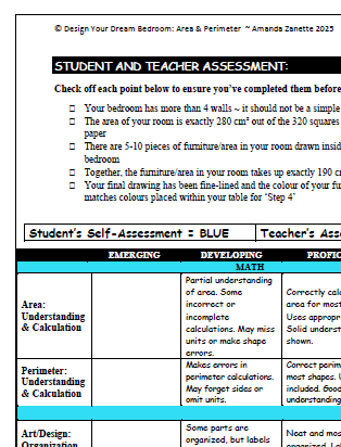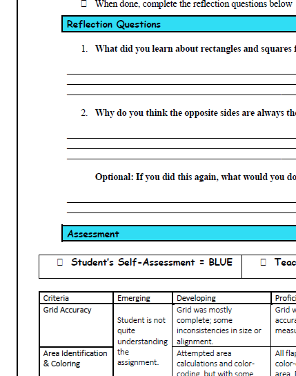 This lesson reinforces area, measurement, and spatial reasoning while promoting creativity, collaboration, and real-world connections. Perfect for centers, whole class, or small group work!