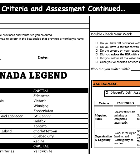 Students will follow clear, step-by-step instructions to label, colour, and complete their own map of Canada, then reflect on their learning using a simple self-assessment.