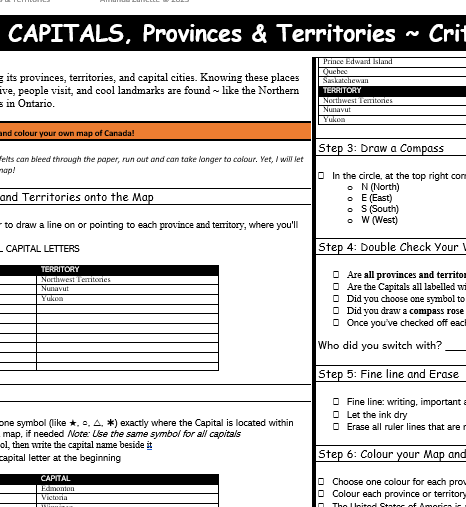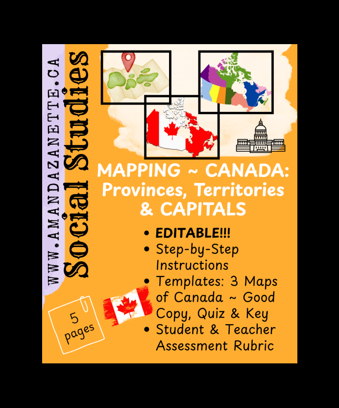 Perfect for Grades 3–7, this engaging lesson helps students learn the names and locations of Canada’s provinces, territories, and capitals, while also introducing key geography skills like using a map legend and drawing a compass rose.